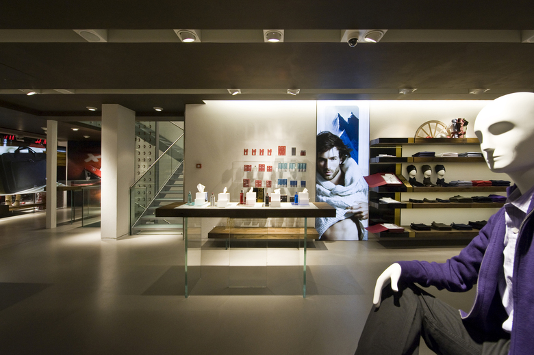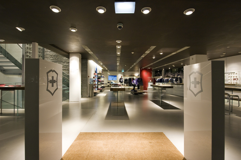 «Cutting edge» titelt ein bekanntes englisches Architekturmagazin seinen Beitrag zum Flagshipstore von Victorinox an Londons berühmtester Einkaufsstrasse New-Bond-Street. Für das Pilotkonzept beauftragt die Traditionsmarke das Schweizer Architekturbüro Mint Architecture. Diese entwickeln ein Laden- und Designkonzept, welches das klassische Markenbild in eine urbane Identität führt und das mit neuen spektakulären Marken- und Produkterlebnissen überrascht. Im Konzept des Architekturbüros spielen denn auch die Produkte der Kultmarke die Hauptrolle. Diese werden im 500 m2 grossen und dreistöckigen Store imposant präsentiert und von einer charakteristischen der Schweizer Natur angelehnten Architektur orchestriert. Architektonische Glanzstücke bilden ein grosszügiges Treppenhaus und Vitrinen aus Glas, die mit erdigen Materialien wie einem Gussbetonboden, einer Granitwand über drei Stockwerke und auffälligen Warenträger aus Eichenholz kombiniert werden. Digitale Highlights mit emotionalen Fotografien von Natur- und überdimensionierten Produktaufnahmen sind Teil des gesamtorchestrierten Markenerlebnisses, das in einer imposanten Produktinszenierung gipfelt. So wird beispielsweise das weltbekannte Multi-Tool-Taschenmesser in einer hochwertigen Box aufgehoben, mit Handschuhen präsentiert und in filmischen Sequenzen gezeigt, wie es einen Rasen in Stücke schneidet. Im gesamten Store verführen verschiedene «Touch Points» den Besuchern in die emotionale Welt von Victorinox. Mint Architecture verantwortet neben Design und Konzept auch die gesamte Umsetzung des ersten europäischen Flagshipstores von Victorinox und realisiert ein Jahr später auch den zweiten in Genf.