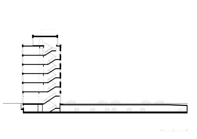 Beide Baukörper wurden in Stahlbeton-Skelettbauweise mit tragenden Fassaden und innerem Stützenraster errichtet.