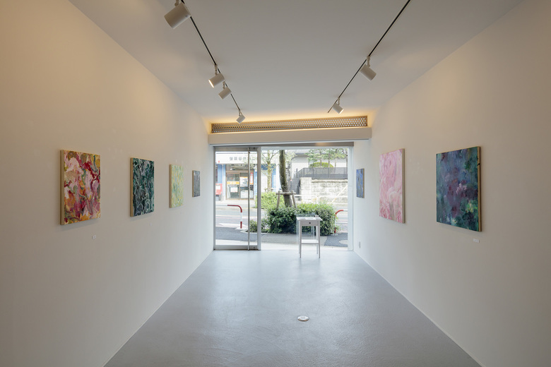 Located on a lot with a narrow frontage, this building houses a gallery on the first floor and a residence on the second and third floors. The client requested that the gallery have a glass facade to allow good visibility from the street and be a single open space to ensure flexibility and allow for future changes in use. They also requested a separate entrance to the second-floor residential area, and a design that required no structural walls on the first floor, such as a Rahmen structure.
