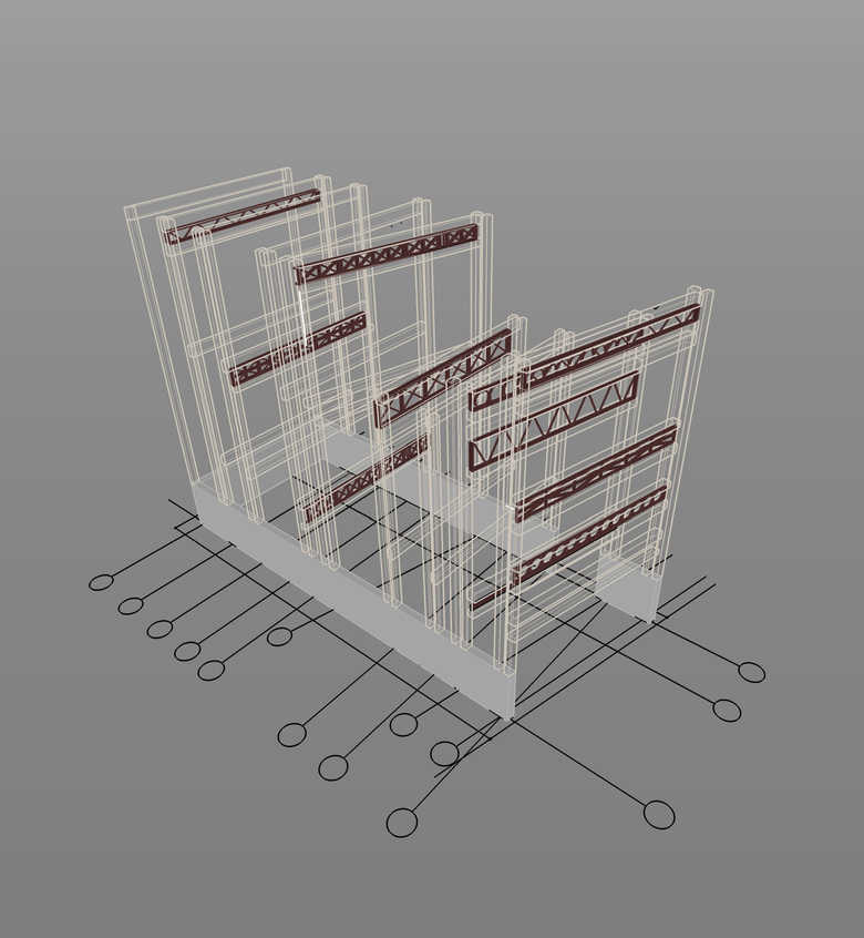 By inserting open steel-truss frames in the center of the expanded beams, we were able to avoid obstructing the space with thick beams, instead allowing lines of site to easily pass through them. Based on strength requirements and the intended use of each area, we varied the form of the truss frames in multiple ways and altered the height of the ceiling, creating a freer, more open space.