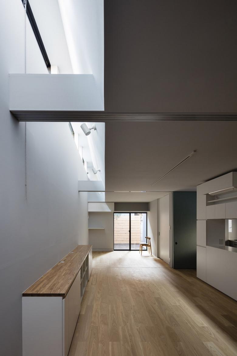 Designing residential architecture in densely developed areas tests our ability as architects to respond both to the surrounding circumstances and the individual needs of the residents. In this case, we used an unusual three-dimensional form to respond to the contradictory demands of complying with building codes related to building height and obstruction of light and views, securing adequate privacy and distance from surrounding buildings, and effectively bringing light into the living spaces.