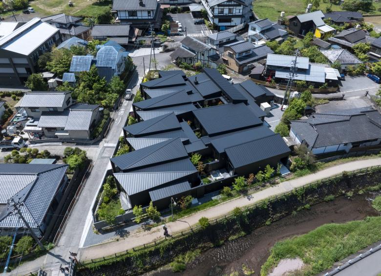 Based on the concept of “traveling as if you were living in a house” the building is not a symbolic structure with a strong presence, but rather a village of small houses nestled together on a scale that blends in with the surrounding landscape.