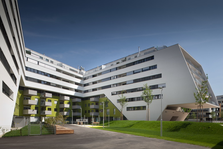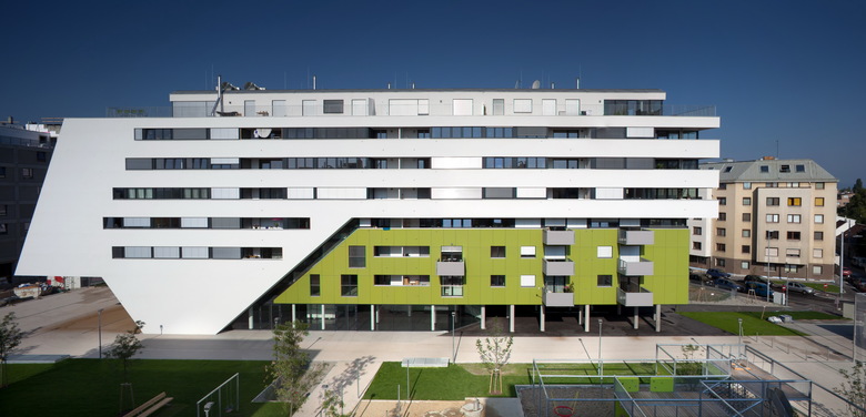 Bis vor wenigen Jahren wurden auf dem ehemaligen Gelände der Bombardier-Werke in Wiens 21. Bezirk Schienenfahrzeuge gebaut - jetzt entstehen hier inmitten einer Parklandschaft geförderte Wohnbauten verschiedener Projektteams. Die Architekten gerner°gerner plus mit dem Wohnbauträger Heimbau waren - als eines der beiden erstplatzierten Büros im vorangegangenen städtebaulichen Wettbewerb - beim Bauträger-Auswahlverfahren bereits gesetzt.