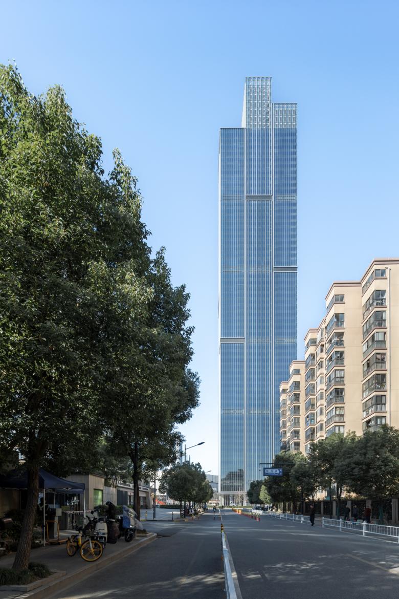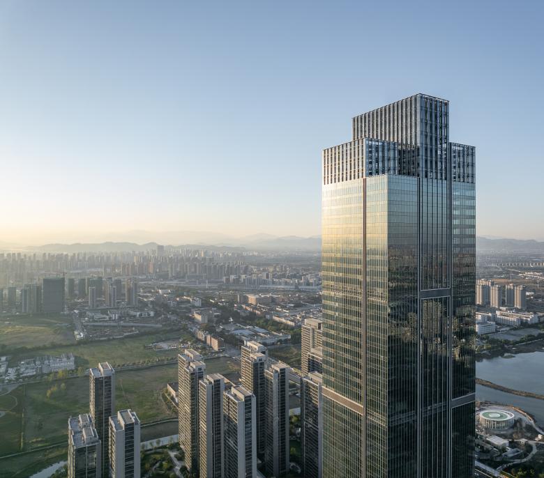 Rising 285 meters into the Hangzhou skyline, the office tower sets a new precedent as the district's tallest structure, offering breathtaking views of the urban green spaces and cityscape beyond. The tower's sleek and contemporary design prioritizes flexibility, catering to the diverse needs of startups and established corporations alike.