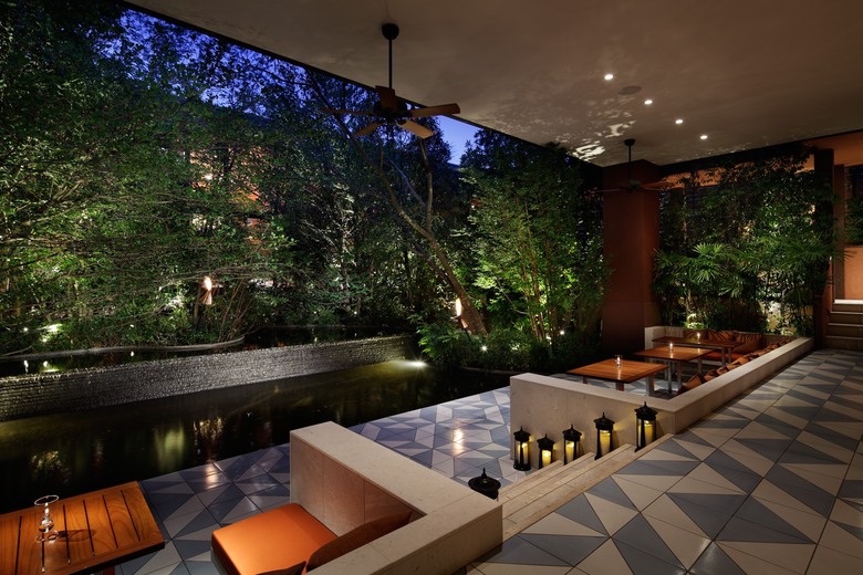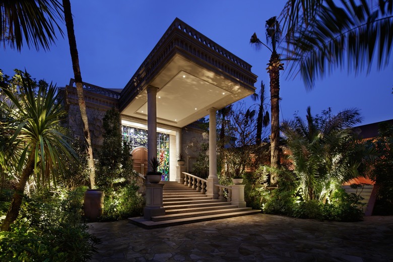 L' emplaçament del projecte era l' antiga ubicació d' una empresa de transports amb múltiples magatzems i mancada d' arbres. El lloc es va transformar en una instal·lació nupcial amb un paisatge inspirat en un complex turístic gràcies a l'ajuda de 600 palmeres procedents principalment de Kagoshima. La palmera de sagú plantada a l'entrada té més de 300 anys i va ser portada des de l'illa de Shodo. En un esforç per dissenyar un espai més extraordinari, es va instal·lar una densa zona de vegetació per protegir l'interior de l'exterior. Per reforçar l'efecte, vam seleccionar acuradament flors i arbres rars.