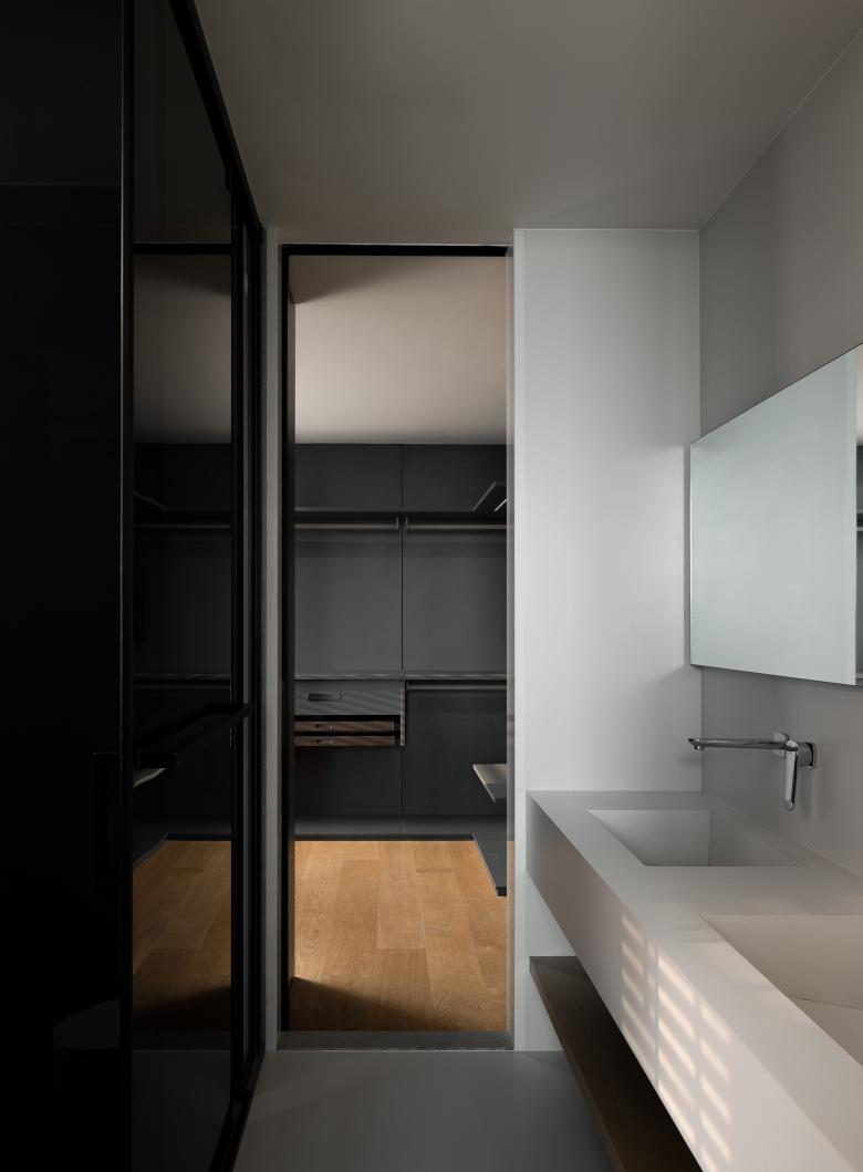 The semi-open relationship among resting area, dressing area and washing area in the bedroom strengthens an open and free living experience.