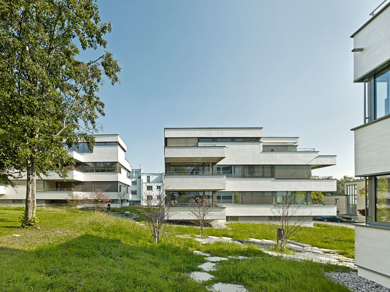 Die zur Diskussion stehenden Grundstücke für die Neubauten sind Teil des frühen Ensembles Carl-Spitteler-/ Steinbrüchelstrasse, welches geprägt ist von ruhigen, durchfliessenden Grünräumen und liegen direkt hinter dem südlichen Siedlungsrand. Es werden drei Setzungen so vorgenommen, so dass der Charakter der Aussenräume quartiertypisch und in selbstverständlicher Weise erhalten bleibt. Um für die Wohnungen ein höchst attraktives Umfeld zu schaffen, werden sie so konzipiert, dass die Wohnzimmer mit den zugehörigen Aussenräumen die Gebäudeecken besetzen. Ausblicke, Durchblicke, Fernblicke werden aus sämtlichen Wohnungen möglich, die Lagequalität der Häuser wird ausgeschöpft.