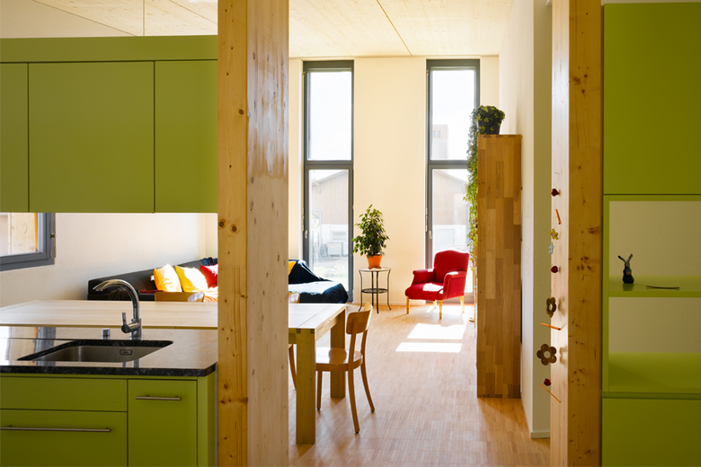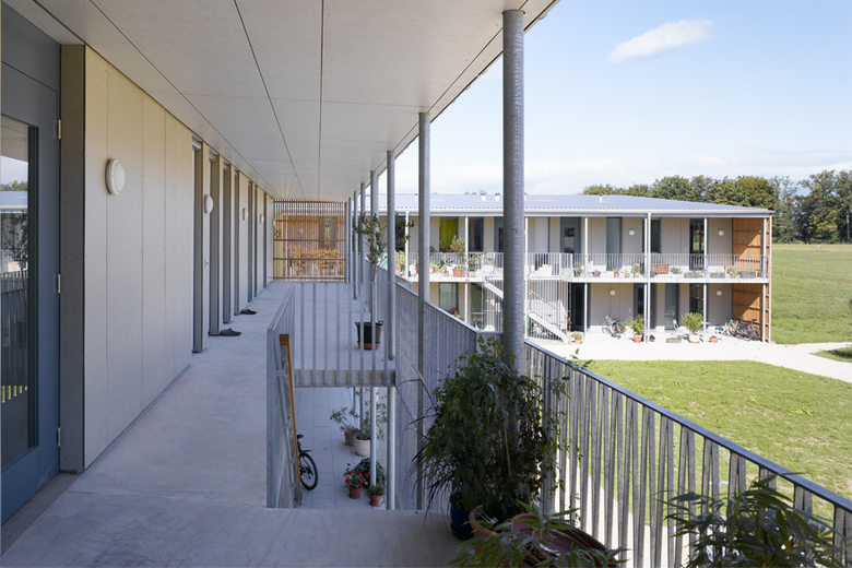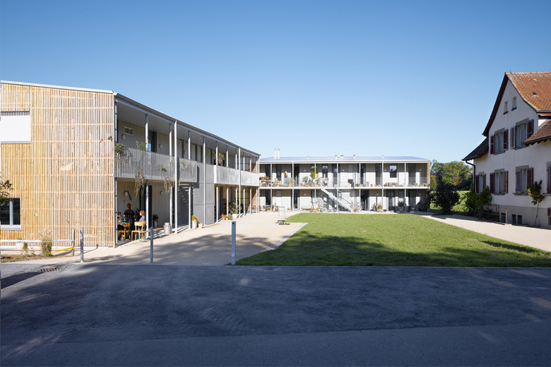 Den Bewohnerinnen und Bewohnern des „Pflug“ identitätsstiftenden Wohnraum zu schaffen war unser Ziel. Die beiden Gebäude öffnen sich zum Hof, greifen aber mit dem ansteigenden Dach und damit durch die Volumenausprägung auch in die umgebende, weiträumige Landschaft. Bewohnbare, wettergeschützte und schattenspendende, Aussenräume bilden den Uebergang der intimen Innenräume zum gemeinsamen Hofbereich bzw. zu den Feldern. Die Lauben am Hof fördern die Zusammengehörigkeit der hier lebenden. Gegen das Feld befinden sich die privaten Aussenräume, hier kann man sich zurückziehen.