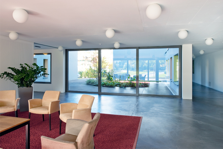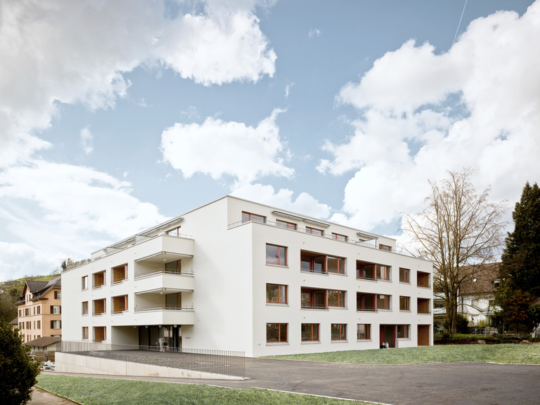 Die 26 alters- und behindertengerechten Wohnungen und die Gemeinschaftspraxis werden in einem kompakten Volumen mit Lichthof untergebracht. Den unterschiedlichen Aussenräumen und Gemeinschaftszonen und deren Charakter wird grosse Beachtung geschenkt. Der Aspekt der Privatheit und Öffentlichkeit ist ein zentrales Thema des Entwurfs. Orte für die Gemeinschaft sollen den kommunikativen Bedürfnissen der älteren Menschen Rechnung tragen. Im Gegensatz dazu sind Orte des Rückzugs in der umgebenden Gartenlandschaft und besonders in Form der eingezogenen Wohnungs-Loggien für jeden Bewohner vorhanden. Die Grundrisskonstellation ist auf selbstbestimmtes Wohnen ausgerichtet, kann aber mit einem minimalen Aufwand zu einer Pflegesituation generiert werden.