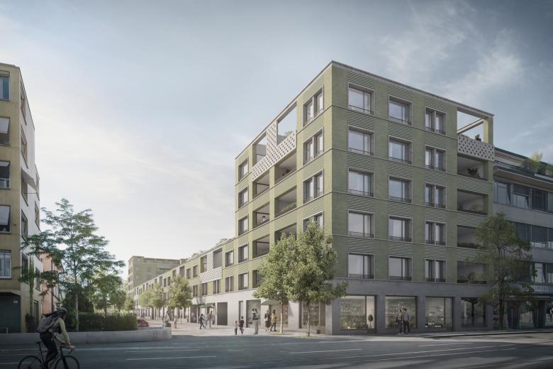 Die Situation erinnerte uns an die Londoner Mews: kleine Hofhauszeilen entlang von privaten Fahrwegen im rückwärtigen Bereich grossbürgerlicher Reihenhäuser aus dem 18. Jahrhundert. Die ungünstige Orientierung zwang uns jedoch, das städtebauliche Konzept der Mews um 180 Grad zu drehen und die Gebäude wie auch die Freiräume abzutauschen. Das Ergebnis ist eine dichte, urbane Überbauung, in der sämtliche Wohnung sowohl von einem interessanten Ausblick, einer guten Besonnung und einem attraktiven Aussenraum profitieren. Der Neubau besteht im Wesentlichen aus zwei verschieden hohen, parallelen Gebäudezeilen. Diese spannen einen gassenartigen Raum auf, der an den Enden durch zwei Querbauten zu einem Hof geschlossen wird. Im Erdgeschoss schaffen sechs grosse Durchgänge eine Verbindung zwischen Innenhof und Spiserstrasse. Die östliche Zeile hingegen ist bis zu 7 Geschosse hoch und stellenweise fast 20 Meter tief. Mit seinen vier grosszügigen, zentralen Treppenhäusern prägt dieser Hauptbau die organisatorische Struktur des ganzen Projekts.