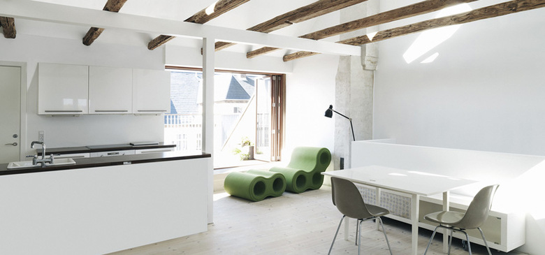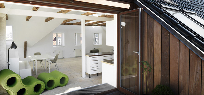 The cooperative housing association AB Jagtvej 3-5 required a solution for an expensive total renovation of their roof. The solution was to extend the upper apartments into this roof space in order to finance the project. The apartments are now two level loft spaces with roof terraces towards the west and enclosed courtyard. All the other apartments in the block have gained a balcony in conjunction with a complete façade renovation.
