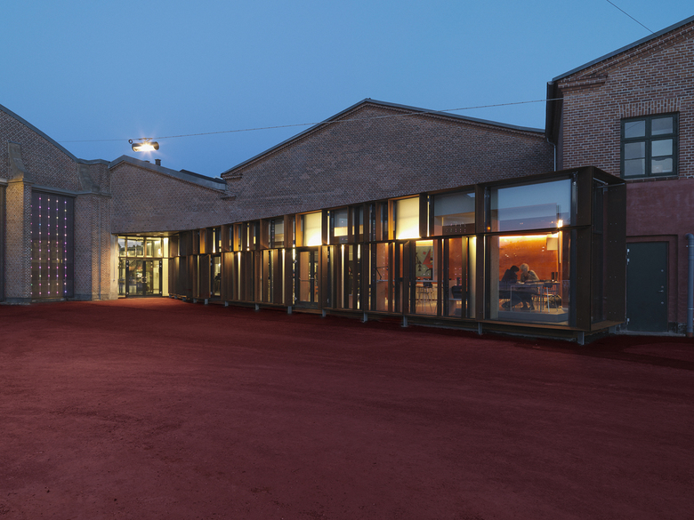 The commission to revitalise and extend Nørrebrohallen (previously tram sheds) in Copenhagen came from a close dialogue with the users of the sports facilities. The main entrance was aligned with the adjacent square and became the centrepiece for the local district with new functions such as café, multifunctional zones and digital displays. The team comprised architects, engineers, branding consultants, anthropologists and artists and included continued user group involvement through the design phases of innovative solutions such as the interactive lighting design that serves as a new identification for the centre.