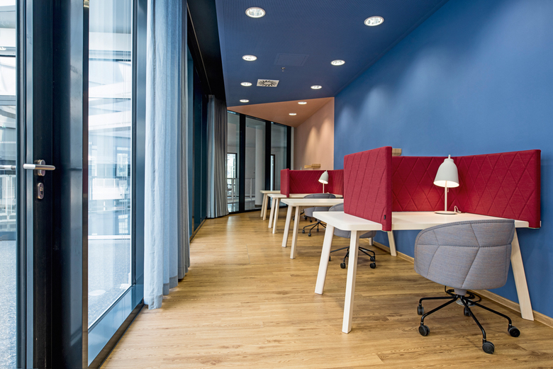 Atrium, 1. OG: Blick in einen Rückzugsraum (Architektur: Hascher Jehle)