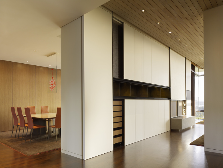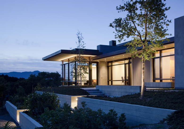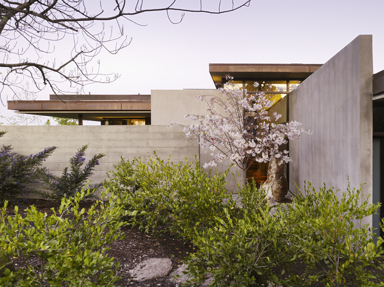 Conceived as a series of interconnected pavilions enclosing a garden, the courtyard-house typology is utilized to achieve private interiority within the suburban context. The strategic interplay of light and shadow, expansion and contraction, solidity and lightness is used to derive spatial richness. The house incorporates fuel cell and solar panel technologies, passive cooling, greywater reclamation, and extensive use of reclaimed finish materials.