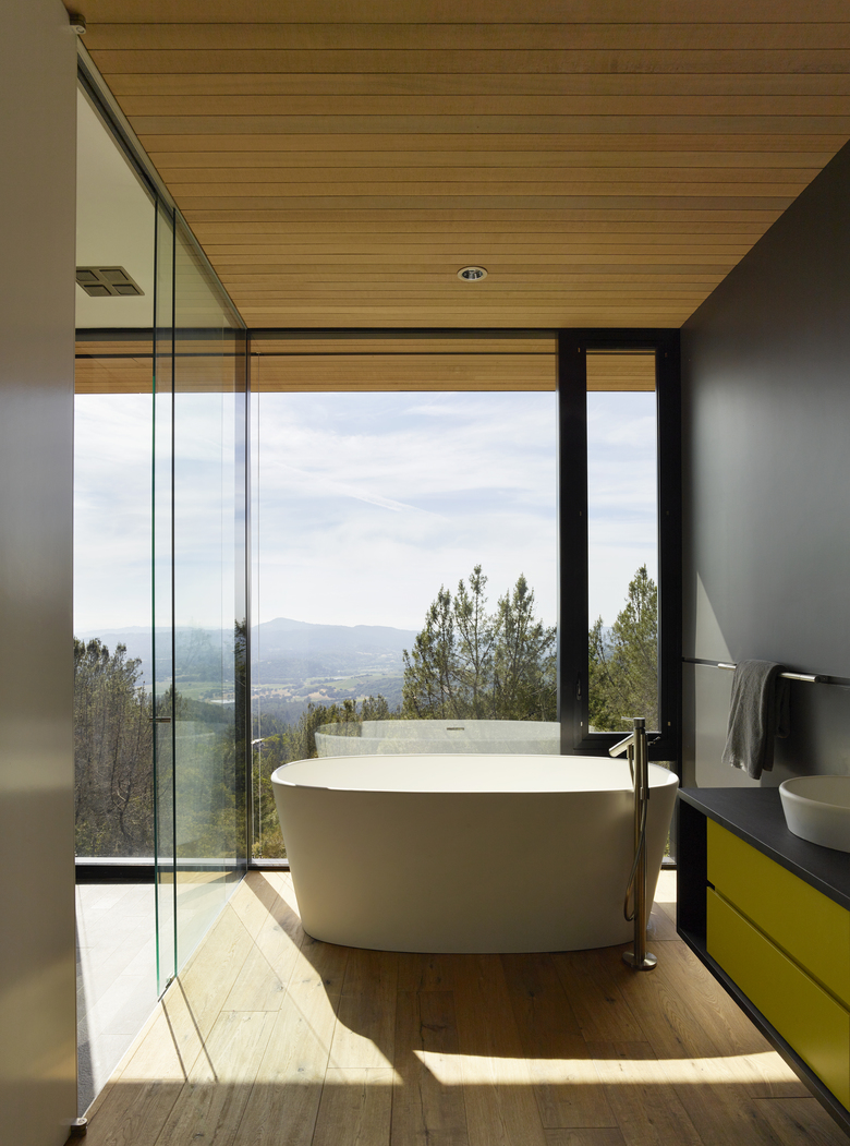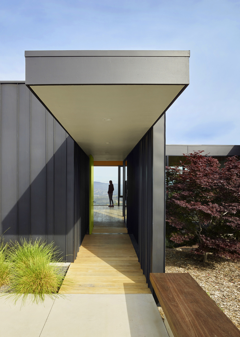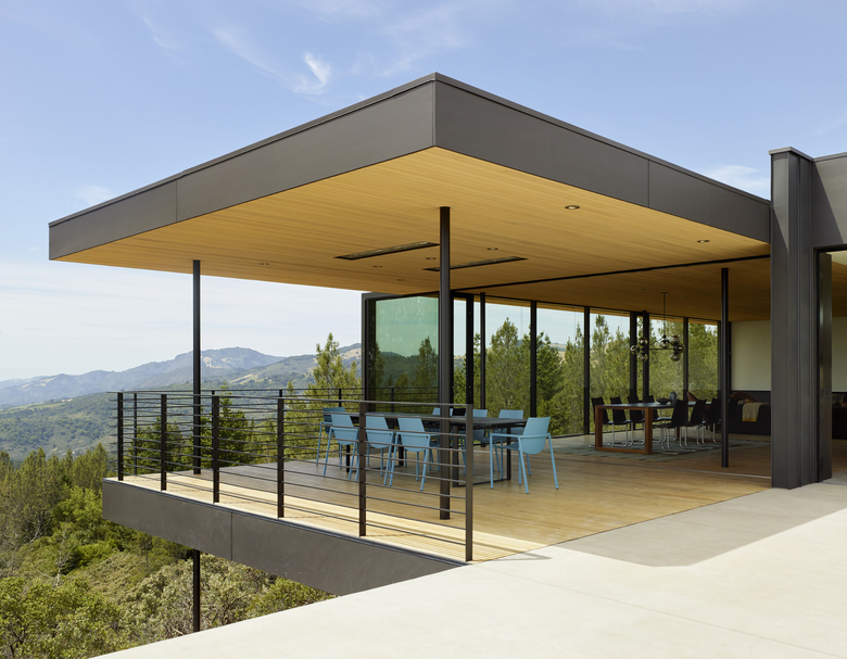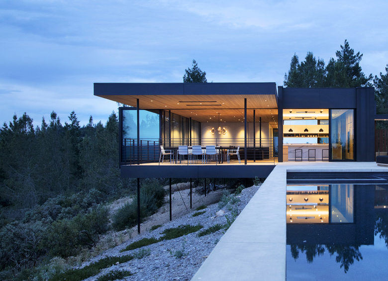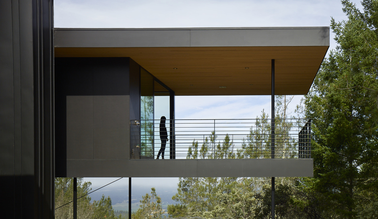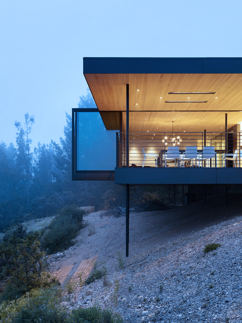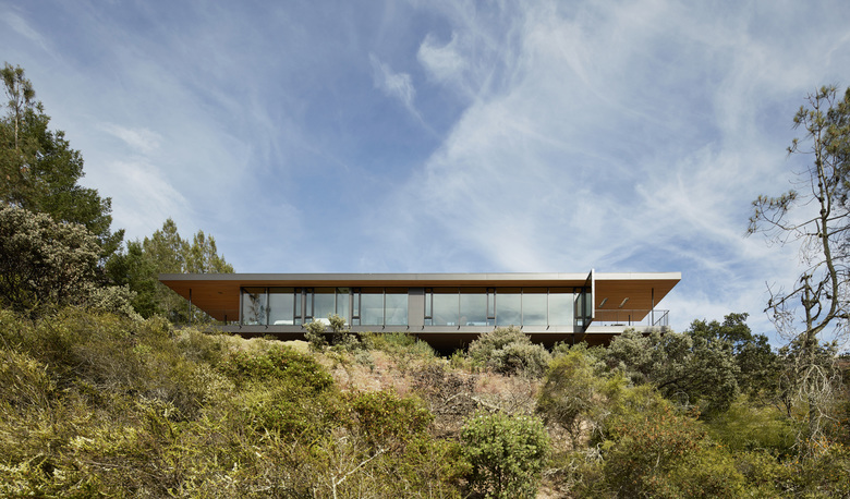 Sited in the foothills of the Mayacamas Mountains in Sonoma California, this single family residence floats over the hillside with commanding views of Sonoma Valley.