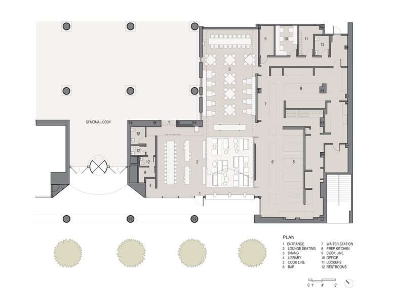 In Situ represents a unique and rich intersection of art, design, and food, each augmenting the other to reimagine museum dining, and our relationships with food. In support of Chef Corey Lee’s vision and the San Francisco MoMA’s greater mission, the design emphasizes visibility from the street, open accessibility to visitors and a sense of the ephemeral within a simple, comfortable environment.