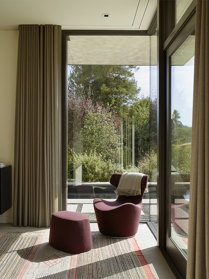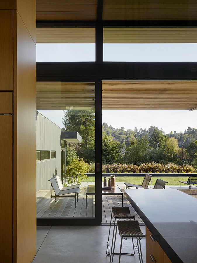 The intention of this residence was to create a sanctuary for a writer, his wife and two college-age sons. The site is located in a typical suburban community in Mill Valley, California. The request from the client was a home with an extremely quiet street presence that, once entered, creates a garden-like oasis. In addition, as collectors of modern art, the clients wanted to merge the spirit of an urban industrial artist's studio with the comfort of a rural home.