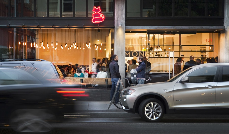“The design and ultimately the dining experience presents itself in layers, and at different scales, starting with the restaurant’s street presence. Through a delicate articulation of materials, lighting and reflections, we were able to blur the boundaries between street, dining space, and kitchen. This articulation operates on many different scales from street itself, to the crimped table covers, plates, and glassware, and even the little red neon fox outside. All are combined to create an experience that is urban and energetic, but comfortable; new and unique, but oddly familiar --- like the restaurant’s name.”