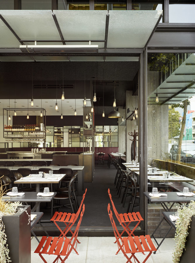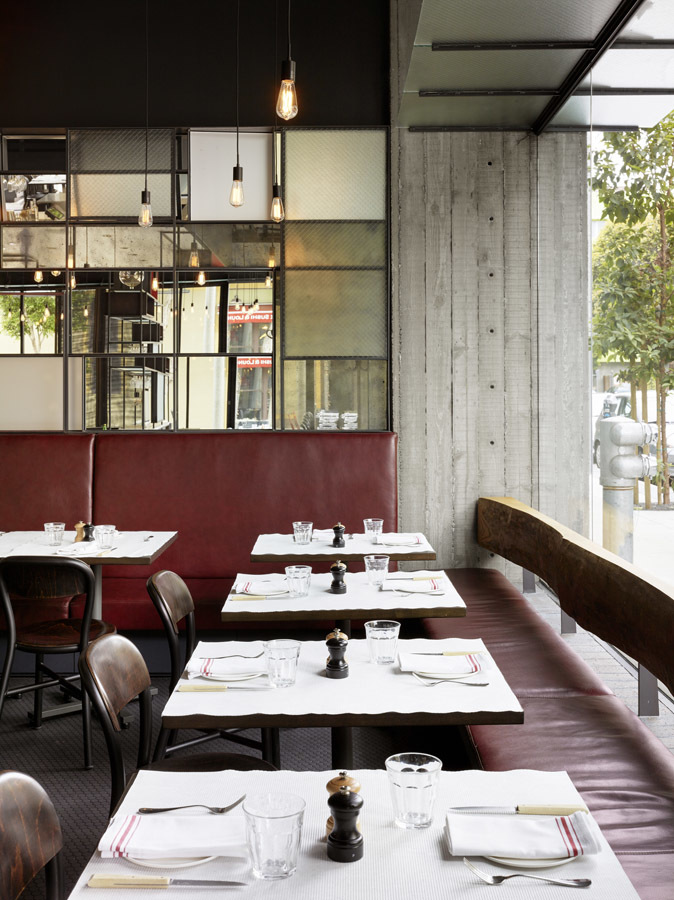 Located just off the bustling Hayes Street corridor in San Francisco, this new contemporary French bistro aims to blur the distinctions between traditional and modern in its cuisine and design. Decidedly more casual than Chef Lee’s 3-star Michelin restaurant Benu, Monsieur Benjamin also obscures the relationship between comfort food and formal cuisine. This obfuscation is reflected in the design. Situated on the corner of Gough Street and the tree-lined Ivy alley, the new 98-seat restaurant aims to absorb the energy, urbanity and pedestrian scale of both streets, and will include outdoor seating on Ivy, all within view of Hayes Street.
