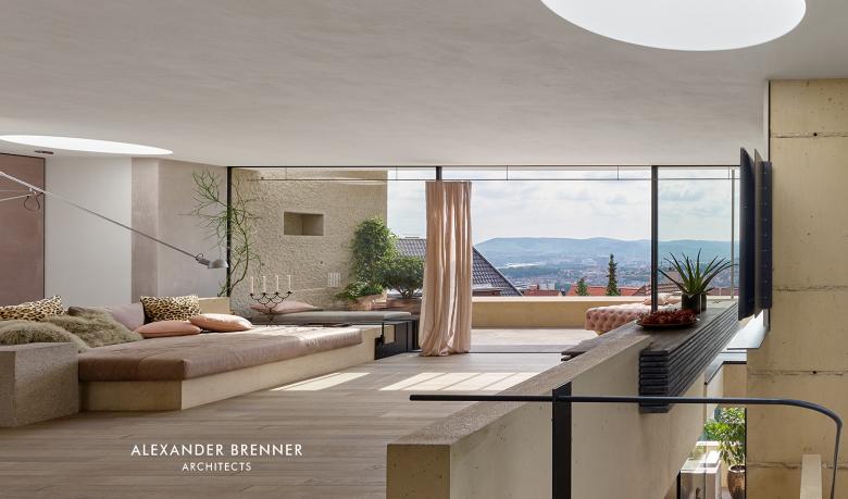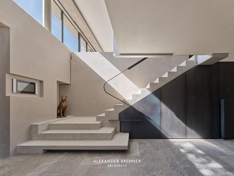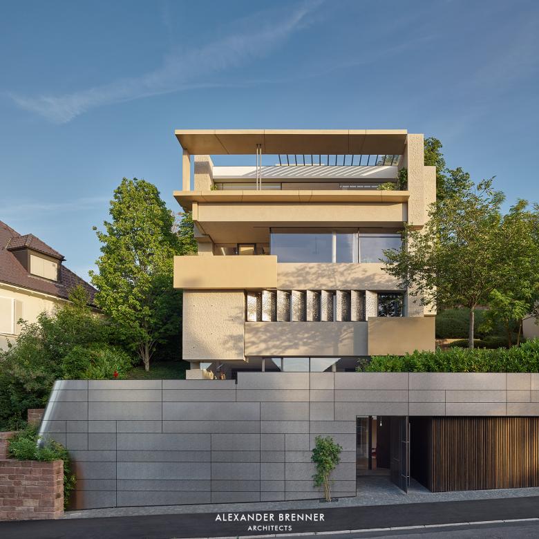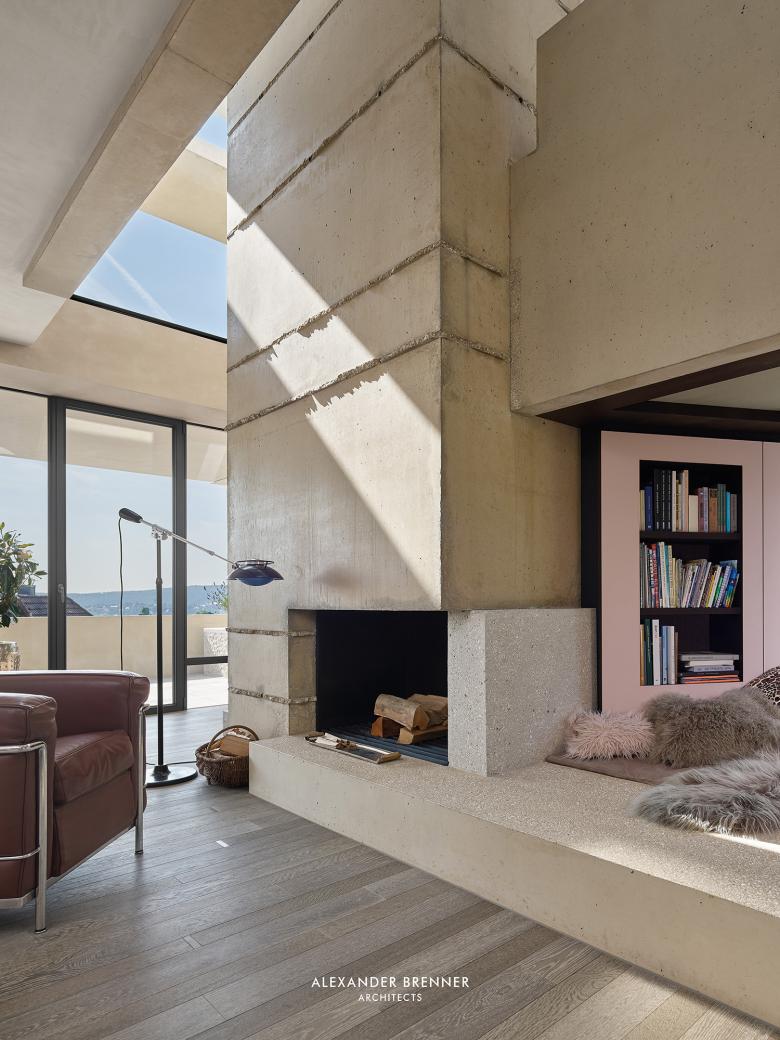 Oberhalb der Parlerstraße im Stuttgarter Norden hat Alexander Brenner direkt neben seinem Architekturbüro für sich ein über vier Etagen reichendes Wohn- und Atelierhaus erstellt.