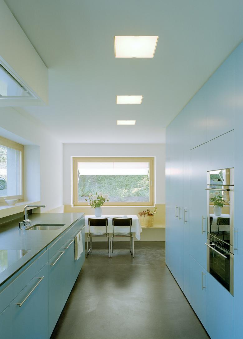 Die Wunschliste der Bauherrschaft war lang: helle grosszügige Räume, Küche gegen Westen, Schlafräume gegen Osten, Arbeitszimmer mit Aussicht aber nicht im Osten, Holz in Innern, kontrollierte Raumlüftung, Sonnenkollektoren, Erdsonde, diverse Aussensitzplätze für die verschiedenen Tages- und Jahreszeiten, diverse Garten- und Spielflächen für die Kinder etc. und vor allem keine überdimensionierte Villa sondern ein geräumiges Haus für eine Familie.