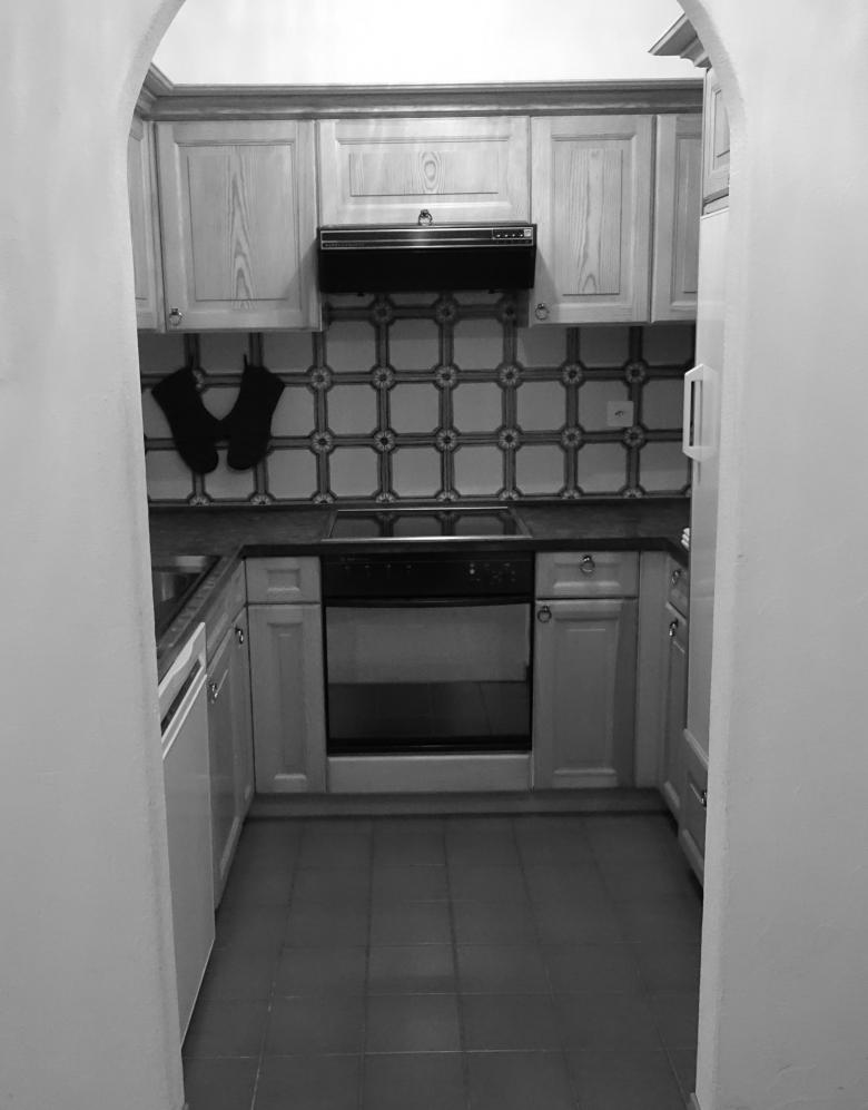 Für die Küchenabdeckung und die Wandbeläge im Bad kam ein Kunststein, welcher den gleichen Farbton aufweist wie der Kautschukbelag, zum Einsatz.