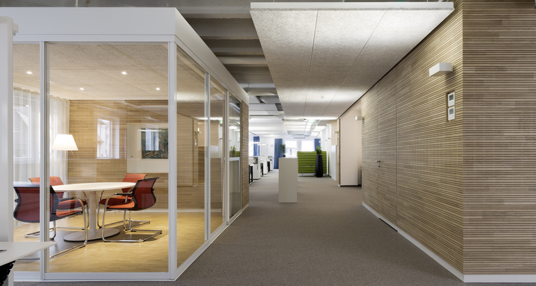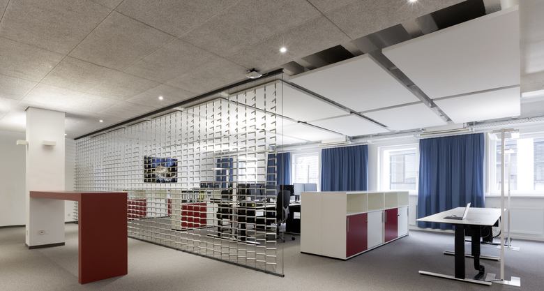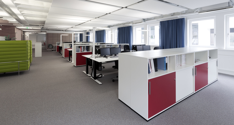 In den Räume im 1. Obergeschoss des Gebäudes wird ein Open Space Office mit zahlreichen Nebennutzungen und einem Showroom umgesetzt.