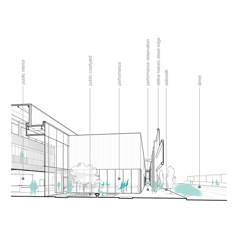 Dance and architecture share a focus on movement, space and time. Celebrating these disciplines, through this civic project, enhances its growing entertainment district and the adjacent residential neighborhoods.