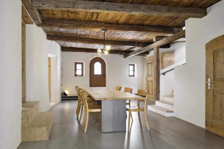 ein haus, ein heustall - zwei gebäude, die spät zusammengefügt und dann verbaut wurden. entrümpeln, vereinfachen, klare linien und strukturen, schlichte heimische materialien und eine rückführung in die traditionelle logische raum-abfolge, wo es möglich war.