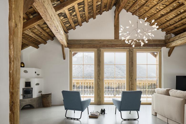 das wunderbare schindeldach in szene setzen, das haus als loft wie es früher war zelebrieren, die aussicht über die dächer von tschlin atemberaubend geniessen.