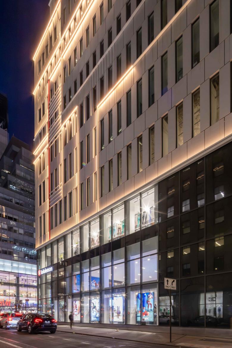 The façade light, constantly evolving over time, reflects the synthesis of East- (New York) and West- (New Jersey) side cultures rooted in this area. It also connects to the adjacent buildings through a gradient of light.