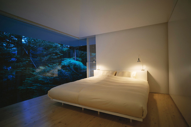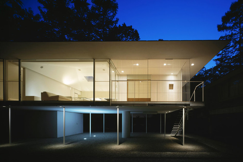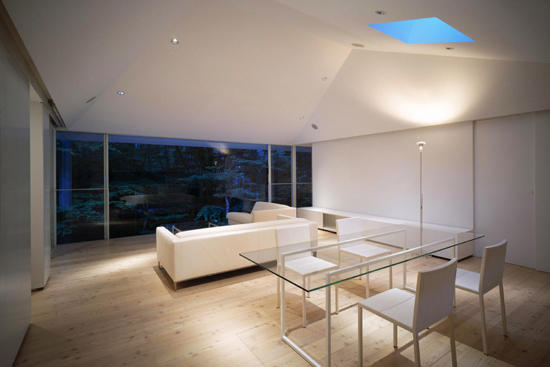This small guest house in resort area of Karuizawa represents Kuma’s unique approach to the architecture. The guest house supported mainly by two large columns and slender supporting 90φ slender columns supporting the cantilevered slab. We have planned that the elevated guest house will be lit warm 2800K while the lower level by cool 4200K. This differentiation of color temperature successfully expressed the floating floor in the middle of forest. A slender 90φ which solid steel columns supporting cantilevered slab were lit with special low-volt fixtures which can be fit into the slab. The living/dining/kitchen being one room was distinguished by switching and dimming the circuit. The Japanese traditional tea room was placed next to the living room created a surprised contrast. We are still designing garden lights which will be compatible to both serene tea ceremony and a dynamic view of forest from the living room. Both interior and exterior lighting demands a careful coordination and dialogue with the owner, architect and artists involved in the project.