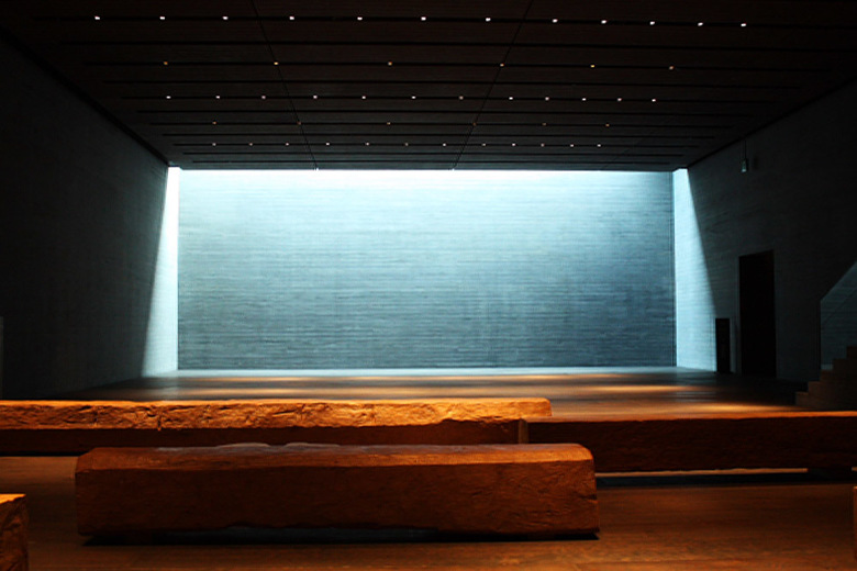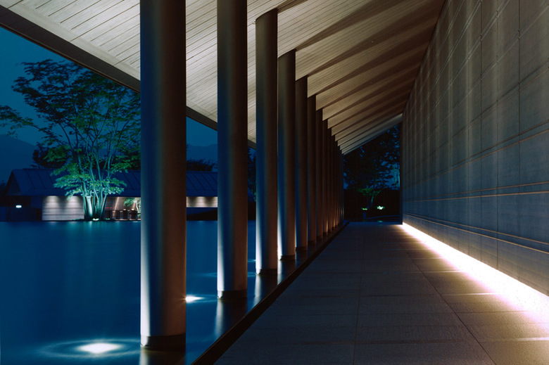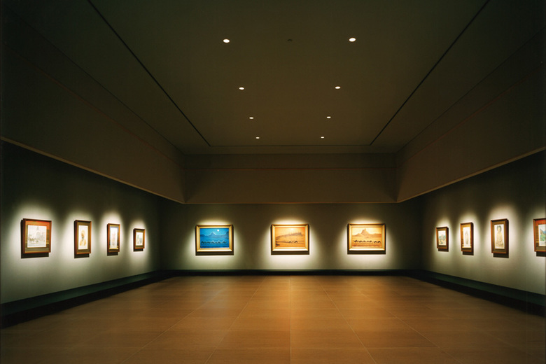 This beautiful museum houses two great existing Japanese artists, Ikuo Hirayama and Churyo Sato. Two wings named after the artists designed over the pond which made the museum floating on the water. When the sunlight hits the water surface, it will reflect and move as wind makes ripples on a underneath of deep eave. At the welcoming entrance, there are only indirect light source located on the entrance which provides warm glow to the space. For the exhibition spaces, we have carefully designed the ceiling not to show the fixtures exposed.