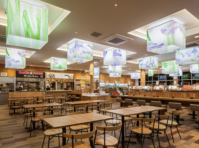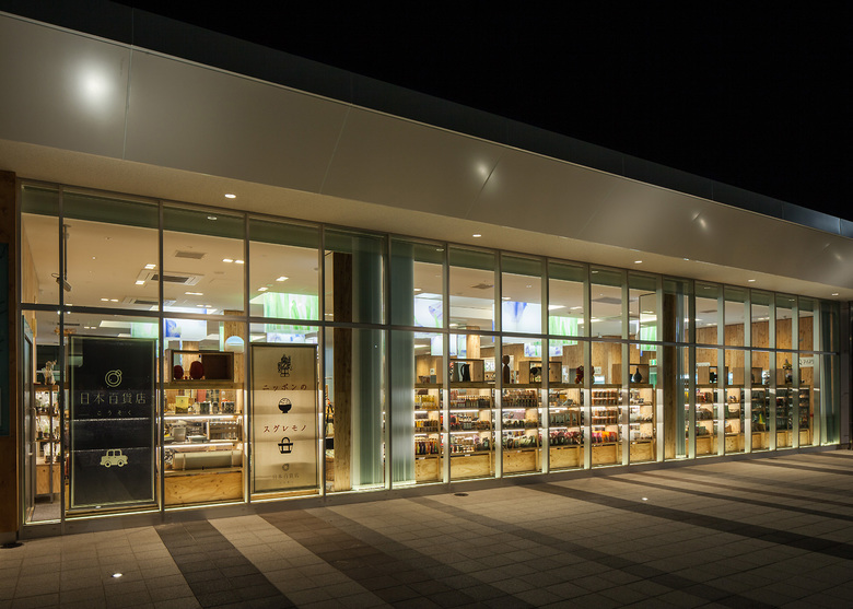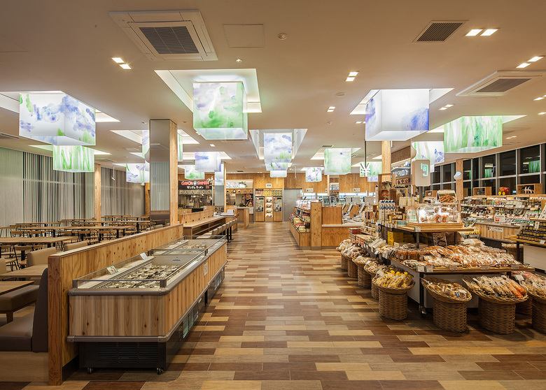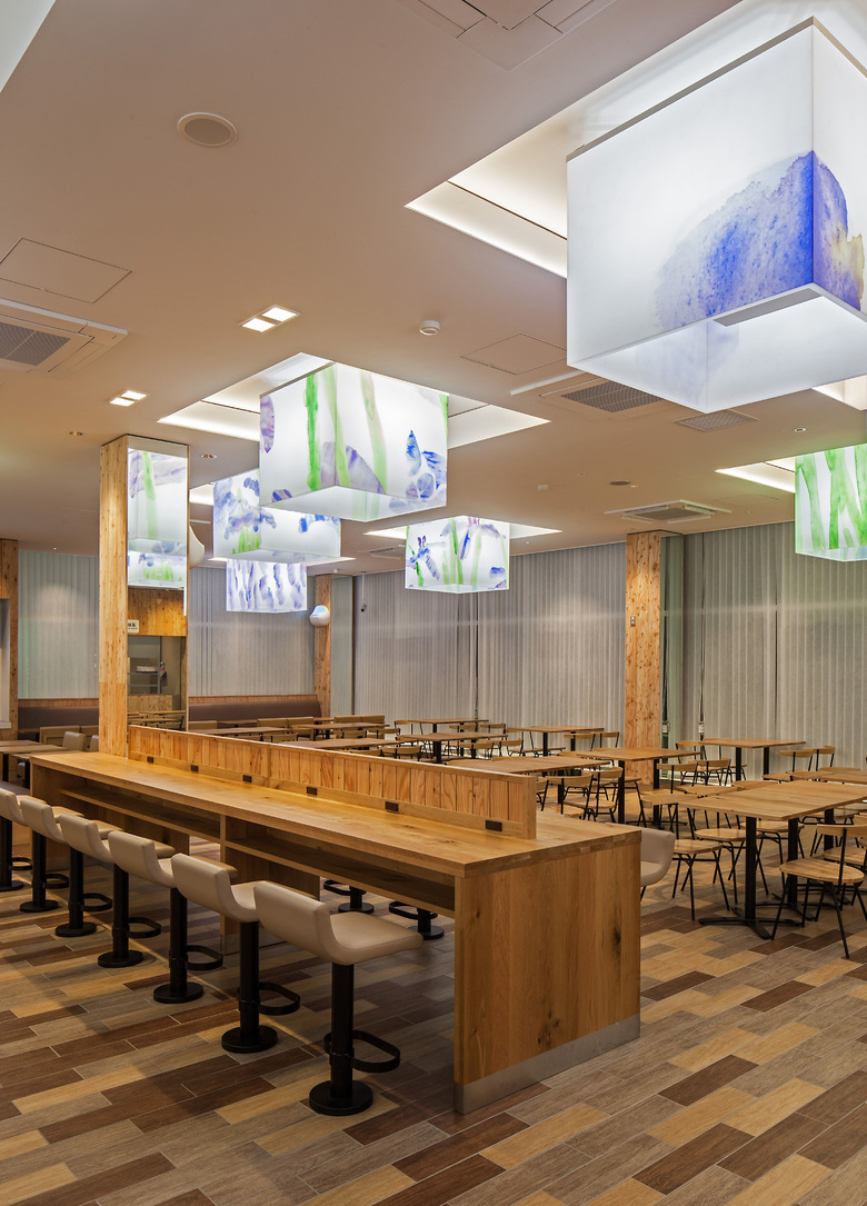 This new section of expressway completed on October 31, 2015 will be very significant for it will enable Ken-O Expressway to connect major Expressways connecting all parts of Japan. The client has won the competition held by NEXCO East Japan and went on to design this Parking Area. Although there were so many restrictions and conditions imposed by NEXCO, Kuma and ALG successfully completed new shopping and resting environment by proposing woody and new LED Pendant Light depicting Shobu (Iris) flower, their local symbol flower.