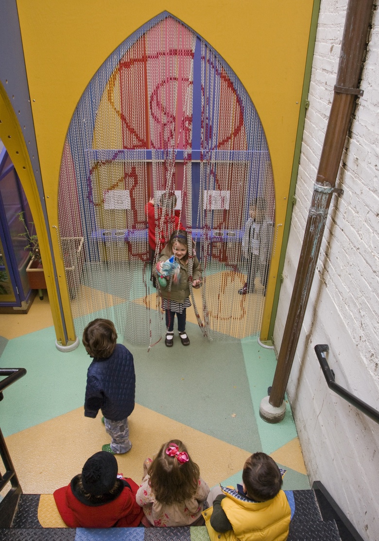 The alley is adorned with art-making, the fire stair becomes a performance hall, and lofty vaults create canopies of artful wind chimes. This endearing architecture with its award-winning tracery, arches, vaults, peek-a-boo quatrefoil cutouts, and modular grid establishes its functional importance as a landscape for reflection, seeing, storytelling, gardening, and exploration, while building upon the historic church’s gothic sensibilities and emotive beauty.