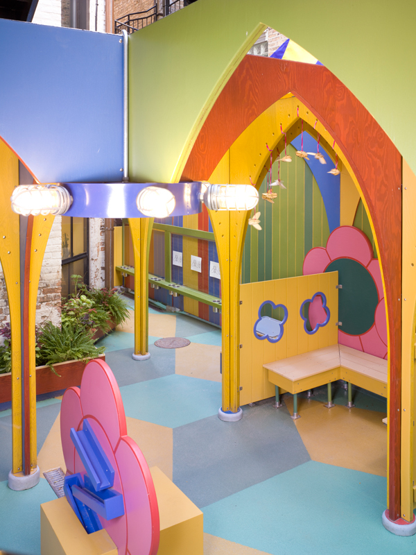 A cathedral of trees rescues a dreary, urban back alley; converting into an uplifting 450 square foot Gothic Children’s Garden into a place of delight, inspiration, creativity, and sanctuary designed for children at play and prayer in the out-of-doors. Soaring arches, reaching up to embrace the sky, articulate a purposeful space that feels larger than its physical boundaries.