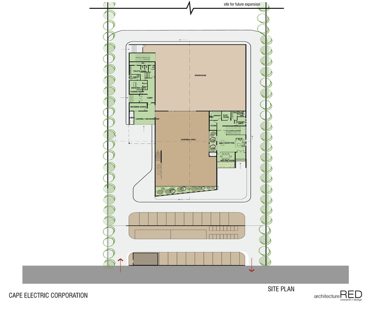 The Cape Electrical Corporation is an Industrial facility with its phase one proposed on a 2 acre property at Oragadam.  The building integrates both the management facility and the warehousing needs of the client.