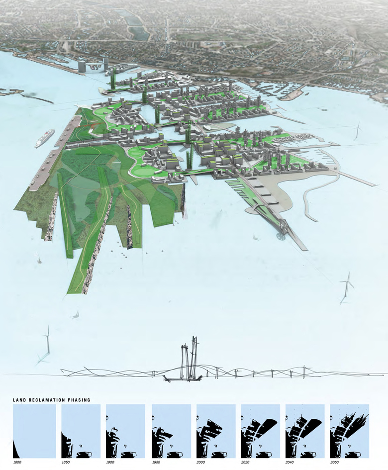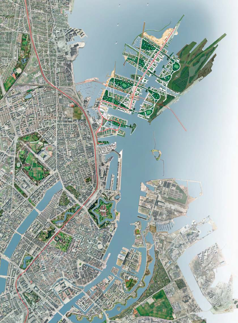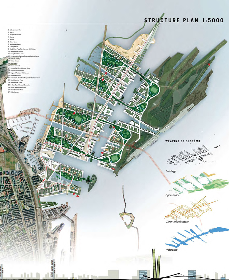 Expanding on the precepts of Copenhagen’s celebrated “Finger Plan”, City Regenerative weaves green spaces, waterways, neighborhoods and commercial nodes into the Nordhavnen Redevelopment Plan to ensure that people are always able to access open space, parks, natural areas, neighborhood services as well as the harbor.