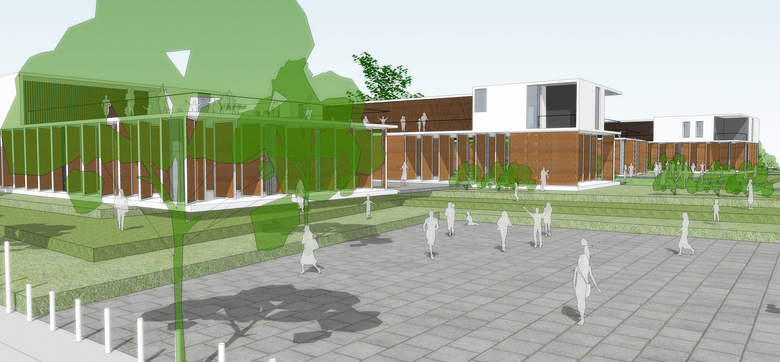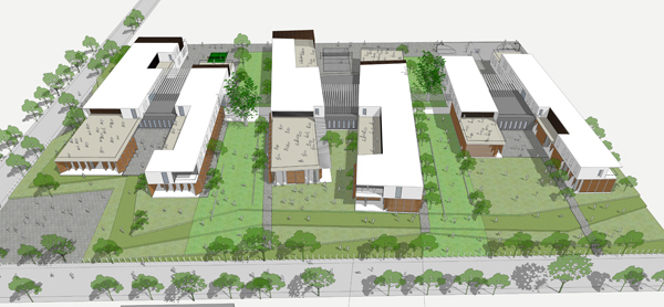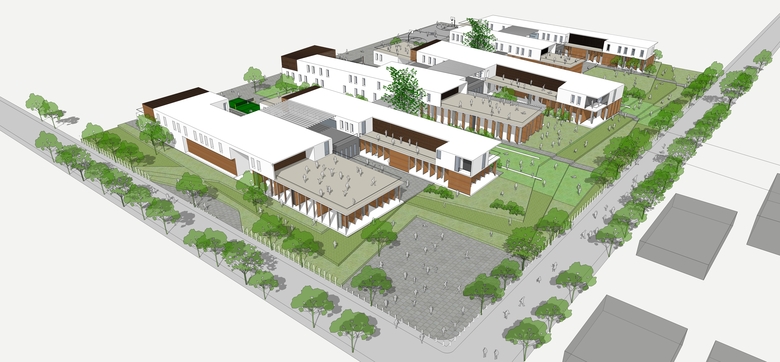 The campus is sustained by its symbiotic relationship with the surrounding community with shared programs that root it to the context. The school becomes a community centre that makes it a free inclusive space for all.