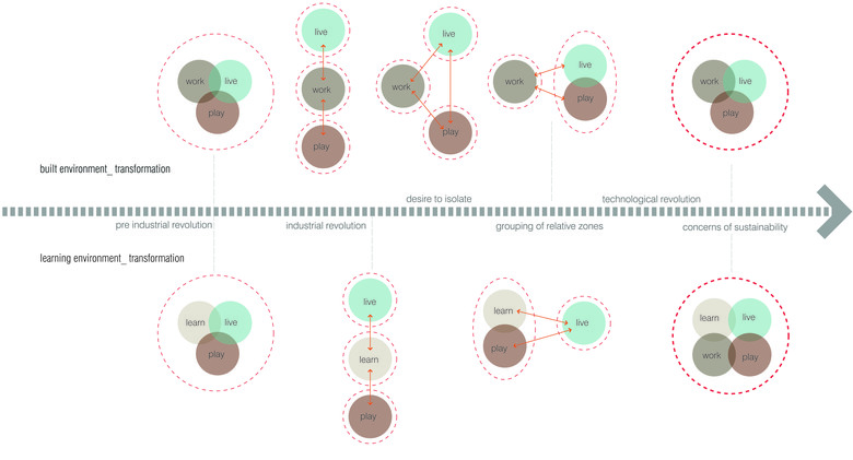 The nature and character of learning spaces have transformed dramatically since the earliest known forms of teaching and learning. The mid 18th century Industrial revolution created a paradigm shift in the systems of living thereby transforming the cities and learning environments.
