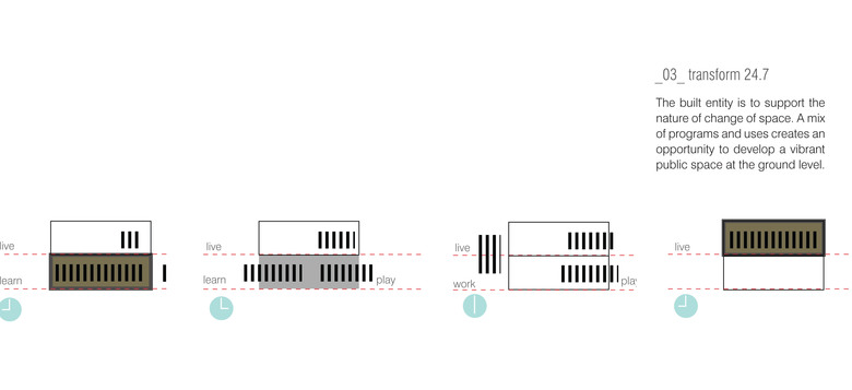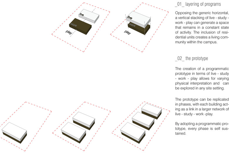 We are looking at re-establishing the circling notion of live-work-play where study is essential to complete the system. The notion of mixed use planning and living has been proved historically as a success and hence greater the multiplicity of space, the higher is the efficiency of living.