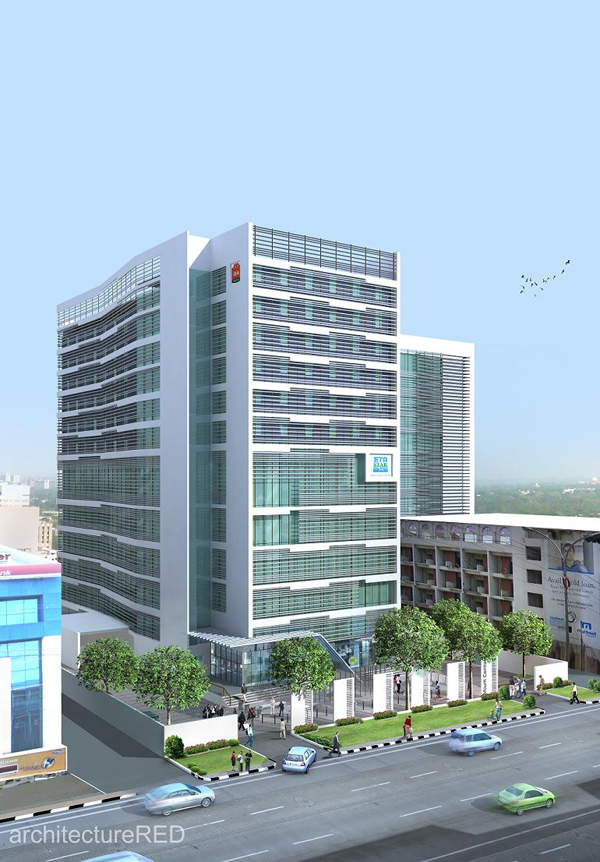 architectureRED were commissioned by ETA Star to design the massing and engineer a façade system for Mount Central – a prime commercial and hotel building on Chennai’s arterial Mount Road. The building, an L shaped 9 storey structure had to reflect the developers vision for a contemporary and iconic architecture.