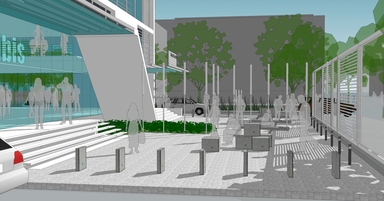 The design process revolved around creating a layered façade of louvers and glass, which would cut down on heat gain and provide a screen for the building.