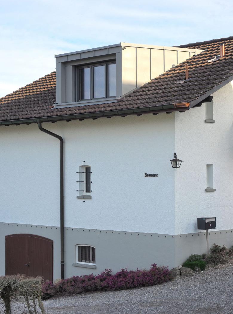 die energetische sanierung umfasst den sommerlichen und winterlichen wärmschutz des steildaches, das einbringen neuer fenster sowie den ersatz der ölheizung durch eine effiziente erdsonden-wärmepumpe.