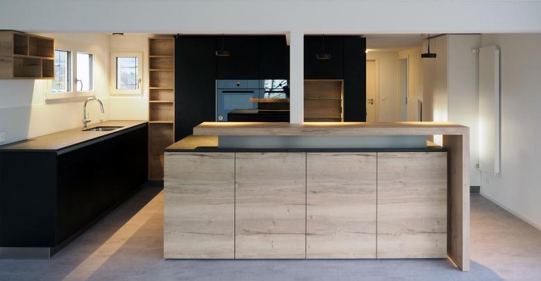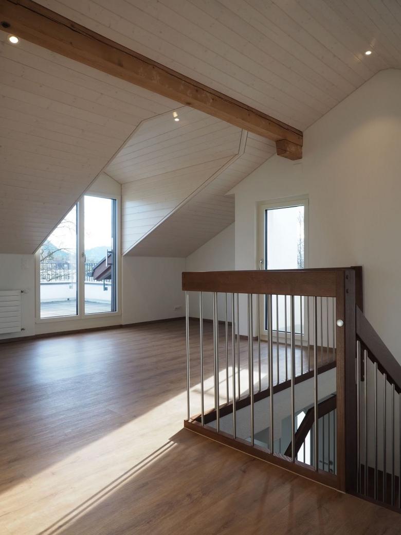 im erdgeschoss wird eine neue küche eingebaut. um das volle potential des mit privateren räumlichkeiten gegliederten obergeschosses auszuschöpfen, wird die dachkonstruktion sichtbar und die überhohen räume spürbar gemacht. nordseitig wird eine neue dachlukarne eingebaut, wodurch das badezimmer über die zusätzliche raumhöhe deutlich an qualität hinsichltlich nutzbarkeit und belichtung gewinnt.