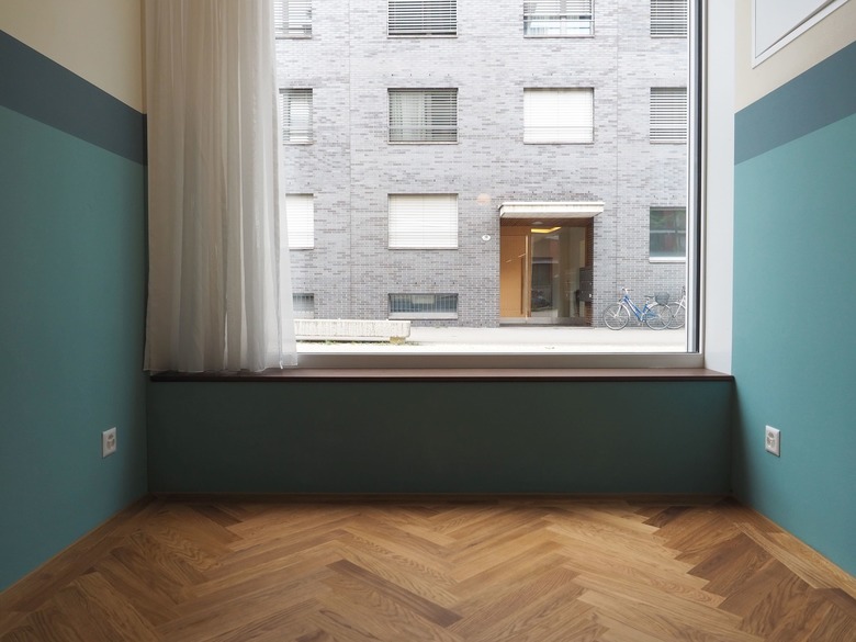eine erdgeschossig situierte stockwerkeigentum- einheit wurde von gewerbe (bestehende arztpraxis) zu wohnzwecken umgenutzt. die räume weisen eine lichte höhe von knapp 4 metern auf, welche dem loftartigen ausbau zu grunde liegen.