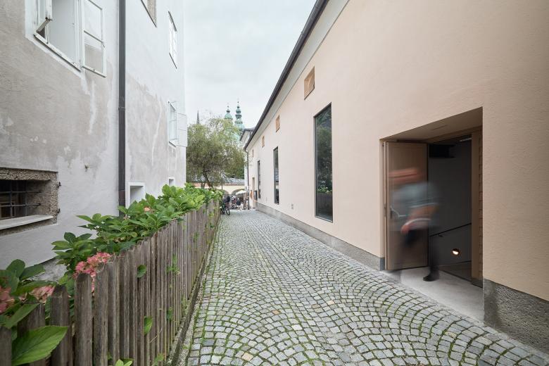 Das „Medienhaus Kapitelsaal“ liegt im historischen Zentrum von Salzburg, direkt unter der Festung im UNESCO-Weltkulturerbe. Ausgangspunkt für den Eingriff war eine Veranstaltungshalle, die nicht mehr dem Stand der Technik entsprach und zu einem multifunktionalen Medienhaus adaptiert werden musste.