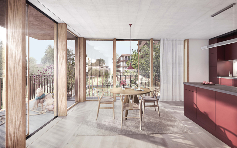 Eine klare Zonierung, weite Balkonflächen, raumhohe Verglasungen und flexible Grundriss-Layouts mit diversen Wohnformen bestimmen die Qualitäten der Wohneinheiten.