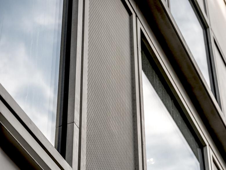 Die tektonische Gliederung der Fassade nimmt mittels einer subtilen Detaillierung Bezüge auf zu den klassischen Gestaltungsprinzipien des kontextuellen Stadtkörpers, bestehend aus Sockel mit Belletage, Hauptgebäude und Dachabschluss. Die geschlossenen Elemente der Fassade sowie das Rahmenwerk der Fenster Bereiche werden mineralisch ausgeführt, sodass das Gebäude einen harmonischen Bezug zu den steinernen Nachbarfassaden dieser wichtigen Zürcher Einkaufsstrasse herstellt.
