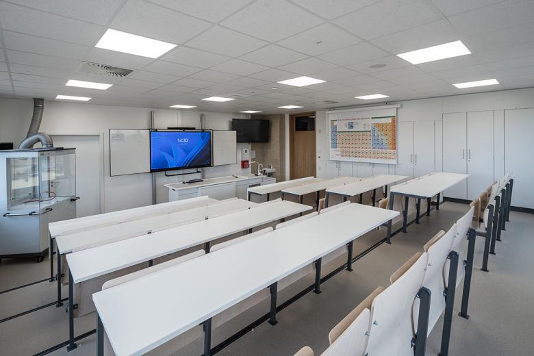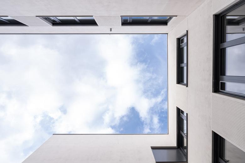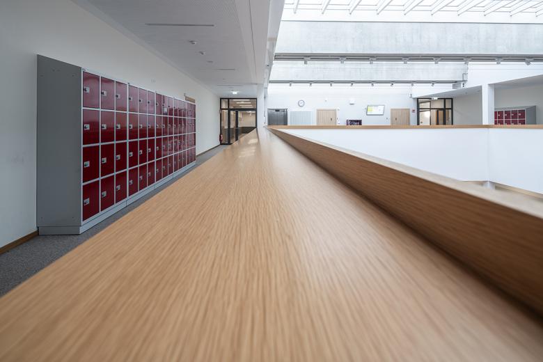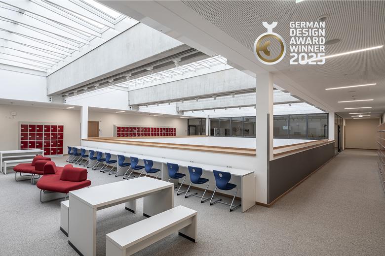 Das Gebäude des Gymnasiums Ebern ist ein typisches Beispiel der Betonbaukunst der siebziger Jahre. Obwohl gut instand gehalten, weist das Gebäude die üblichen, aber erheblichen Mängel hinsichtlich Brandschutz, Schadstoffen und Baukonstruktion auf. Durch Vergleichsrechnungen der notwendigen Maßnahmen veranlasst, wurde beschlossen das Gebäude abzubrechen und durch einen Neubau zu ersetzen. Die Konzeption des Neubaus zielt darauf ab, den Schulbetrieb aufrecht zu erhalten während in einem ersten Schritt der Klassentrakt errichtet wird. Erst nach Umzug in diesen, wird das Hauptgebäude abgerissen und an diese Stelle im zweiten Schritt der naturwissenschaftliche Trakt errichtet. Der Entwurf zielt von Anfang an auf eine möglichst kompakte Gebäudekubatur des dreieinhalbzügigen Gymnasiums ohne dabei im Inneren beengt zu wirken. Wesentlicher Baustein dieser Überlegung ist die zentrale glasüberdeckte Pausenhalle die sich geschossübergreifend über die Nutzungsebenen erstreckt, zusammenbindet und für ein großzügiges Raumerleben sorgt. Lochfenster mit gleichmäßig gereihten Fenstern gliedern das Bauvolumen in der Außenerscheinung und schaffen eine angemessene Maßstäblichkeit.